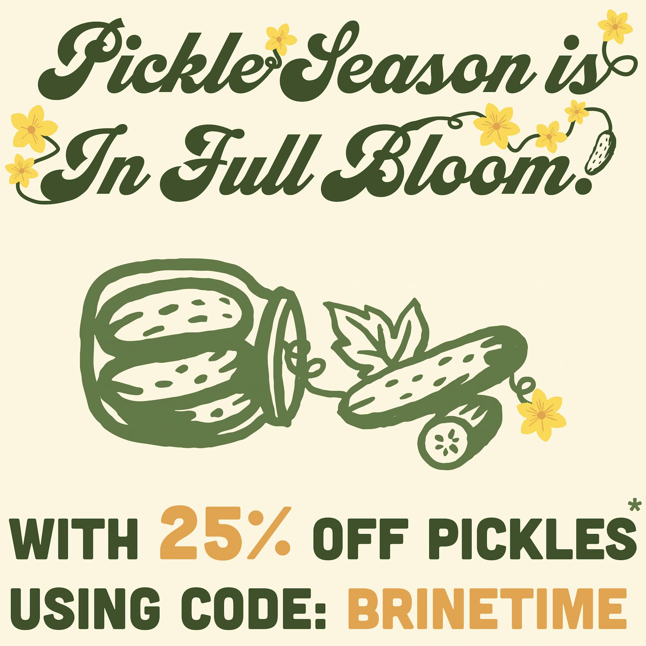 25% Off Pickle 4 Packs and Pails Use Code: BRINETIME other restrictions apply